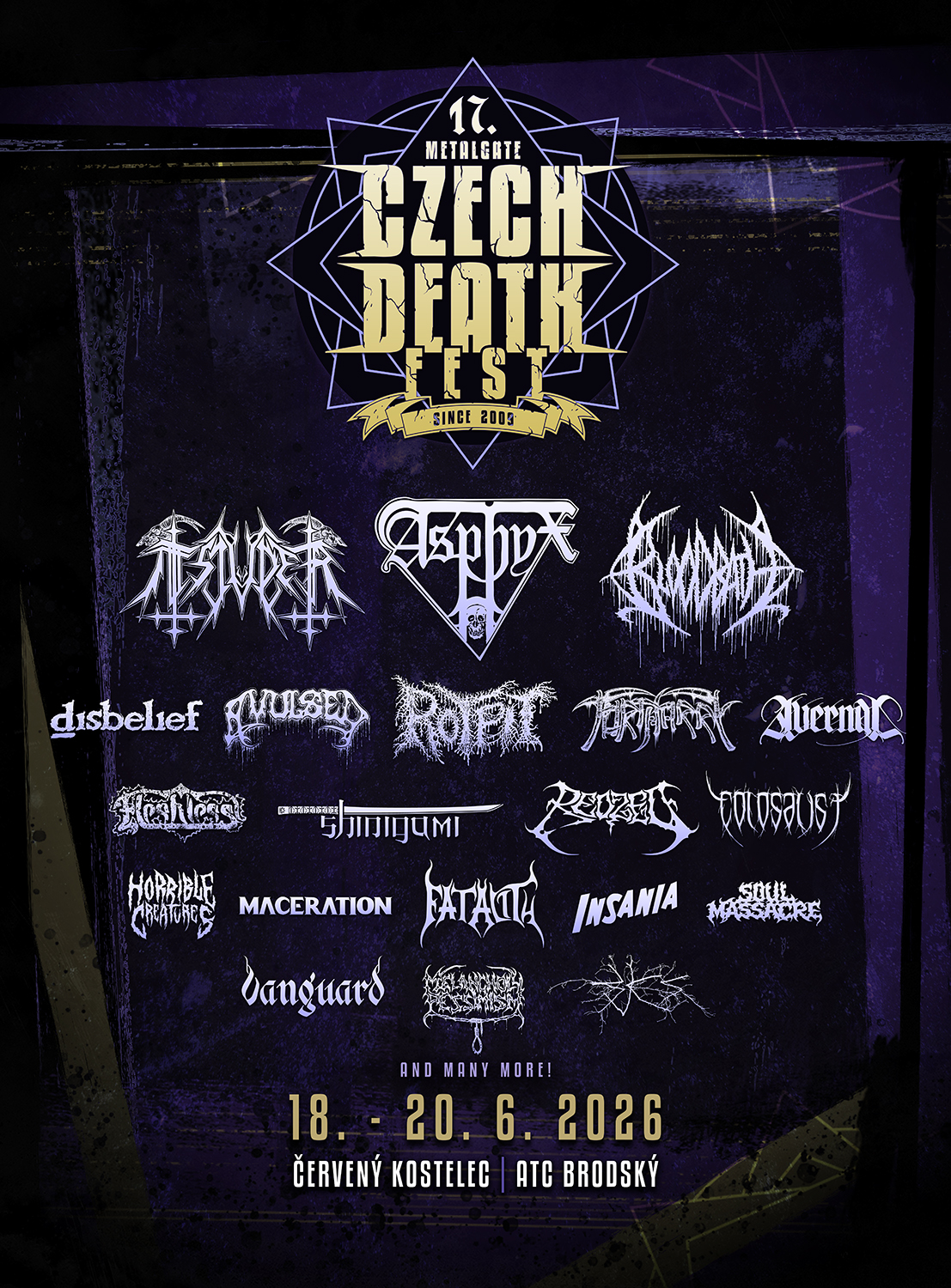 Line-up MGCDF 2026: Asphyx, Avernal, Avulsed, Bjes, Bloodbath, Colosalist, Disbelief, Fatality, Fleshless, Horrible Creatures, Insania, Maceration, Melancholy Pessimism, Redzed, Rotpit, Shinigami, Soul Massacre, Tortharry, Tsjuder, Vanguard a mnoho dalších
