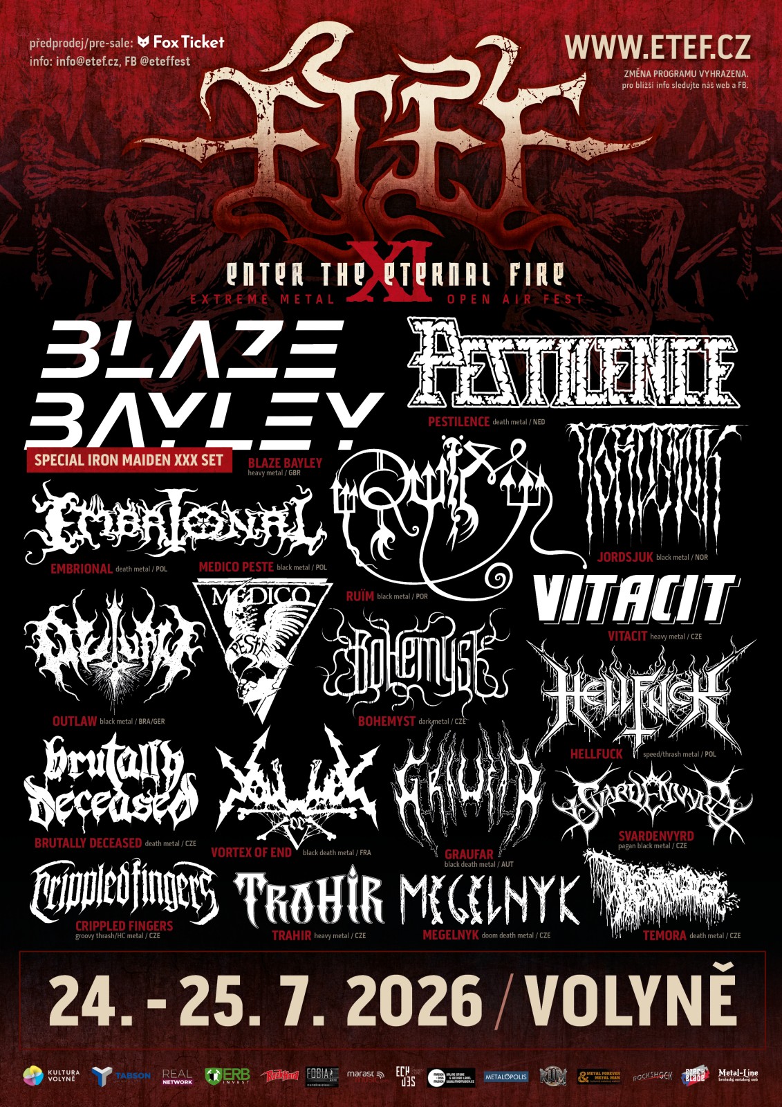 ETEF 2026 oznamuje: BLAZE BAYLEY, VORTEX OF END, OUTLAW, GRAUFAR, MEGELNYK a CRIPPLED FINGERS