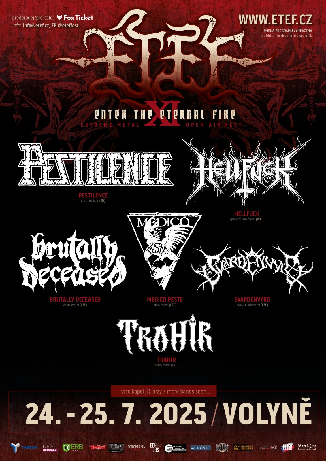 ETEF 2026 oznamuje: PESTILENCE, HELLFUCK, MEDICO PESTE, BRUTALLY DECEASED, TRAHIR a SVARDENVYRD