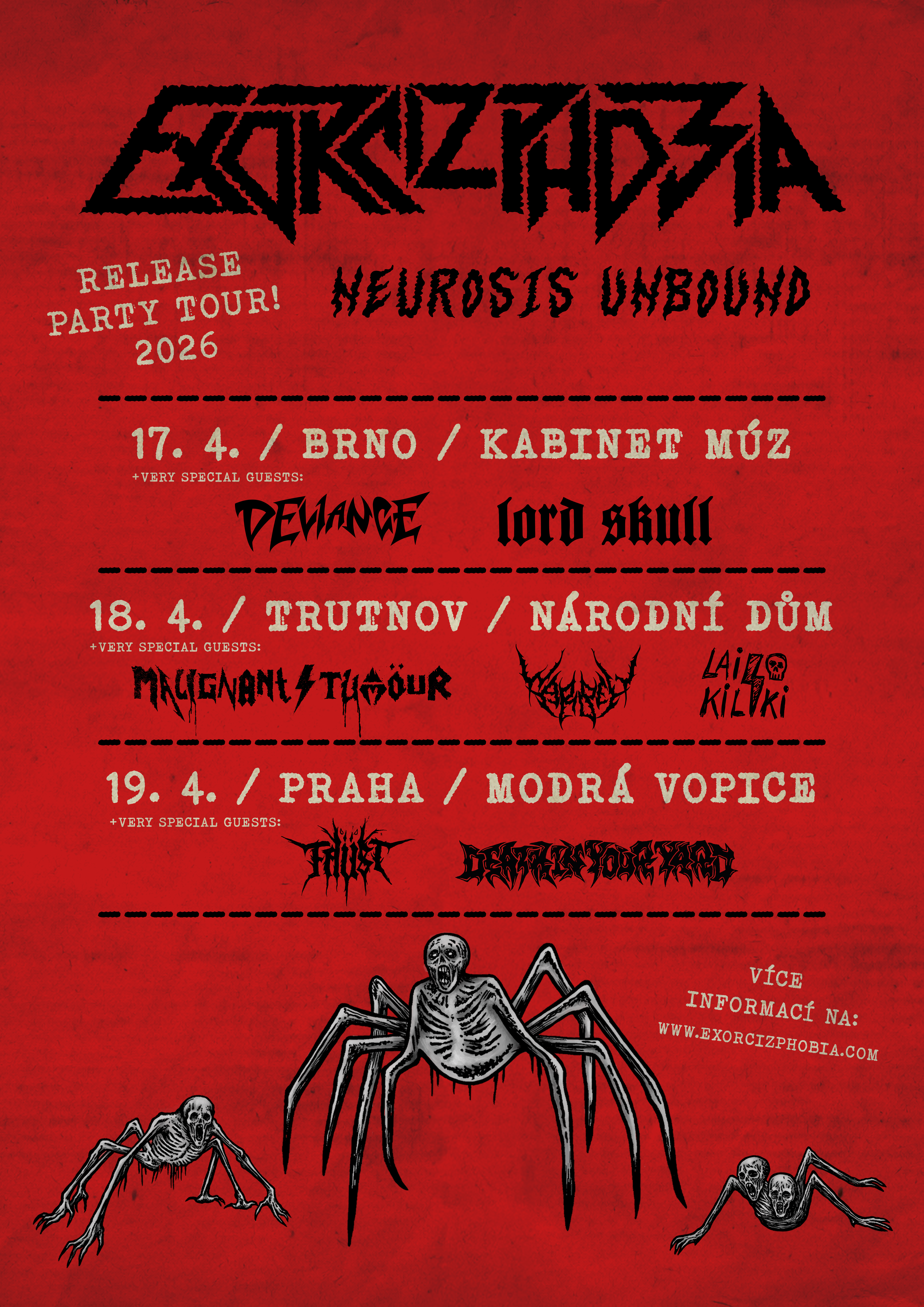 Jak bylo avizováno již dříve, EXORCIZPHOBIA vydá svoje páté řadové album "Neurosis Unbound" 13.4. pod Doomentia Records a nyní vyhazuje první singl k titulní věci. Dále také oznamuje speciální japonskou CD verzi, která vyjde pod DTD Records téhož data. Součástí edice bude cover skladby "Popravčí Píseň" od SAX, odlišný přebal, plakát a další zajímavé nuance.