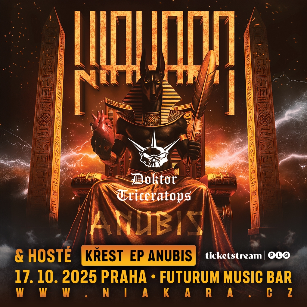 Pražský Futurum Music Bar znovu přivítá kapelu NIAKARA V pátek 17. října 2025 zde proběhne křest nového EP "Anubis" – temného příběhu z egyptské mytologie, který navazuje na loňské Anunnaki. Večer ozdobí speciální hosté: pražští DOKTOR TRICERATOPS, bubenická legenda Marek Žežulka (ex-Arakain, Divokej Bill), zpěvačka Leona Šenková (TOP 8 Česko Slovenská SuperStar 2009) a Dan Friml, hudební producent, multiinstrumentalista, zakladatel a frontman kapely Mean Messiah, výrazné formace české progressive industrial metal scény.