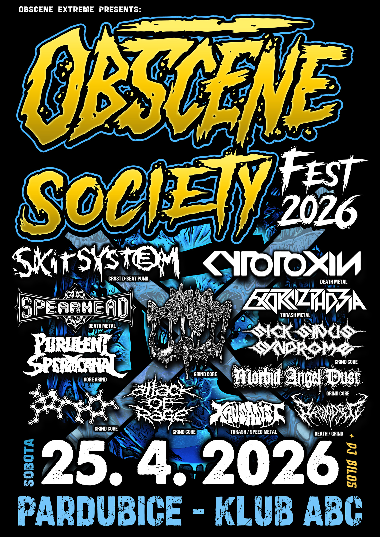 Jednodenní indoor festival v pardubickém Klubu ABC pořádají labely Obscene Productions a Insane Society po jeho obnovení v roce 2023 už počtvrté. Těšit se můžete na dvanáct skvělých kapel, kde si na své přijde každý fanoušek extrémní muziky, a už klasicky i na mini beer fest, grind market a vegan catering. A navíc se slaví narozeniny malého grindera - Čurbyho vnuka!
