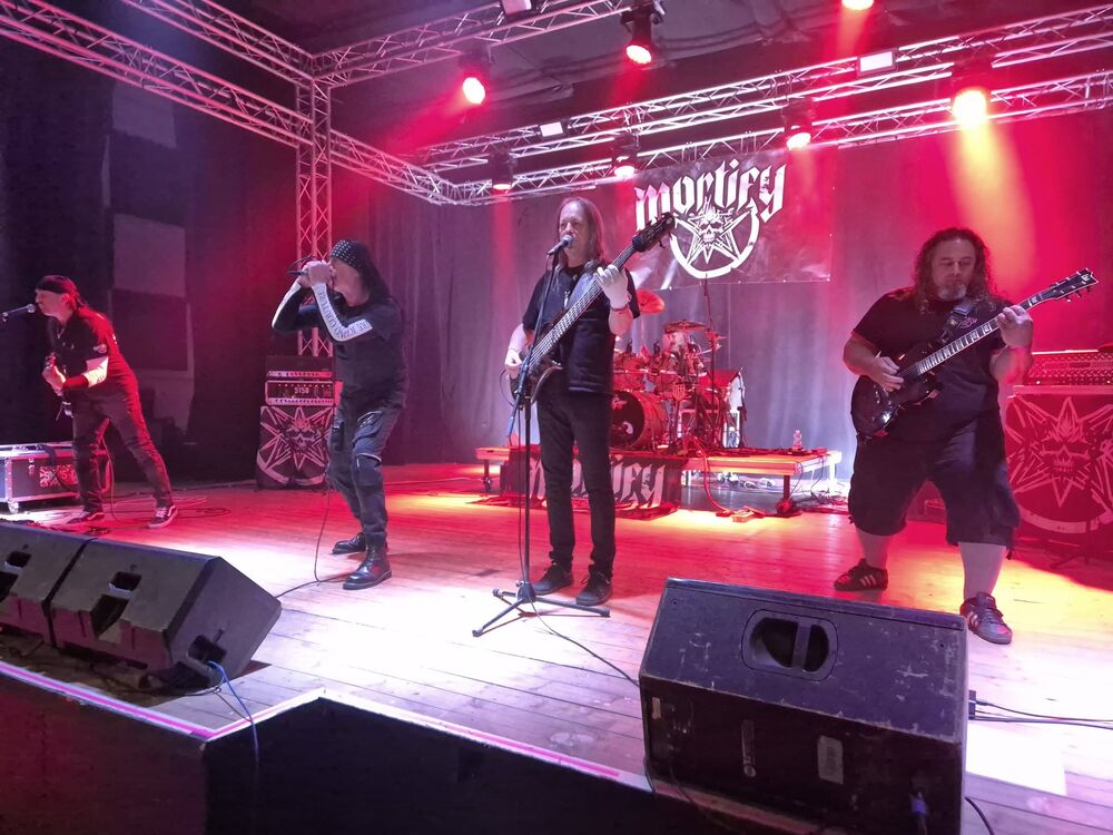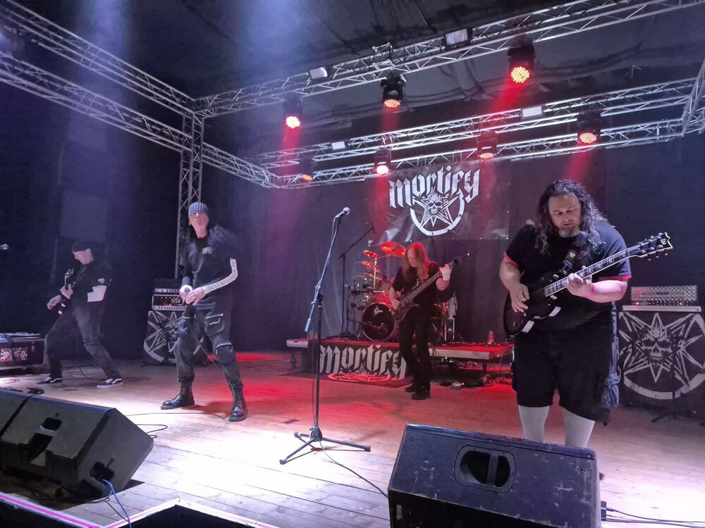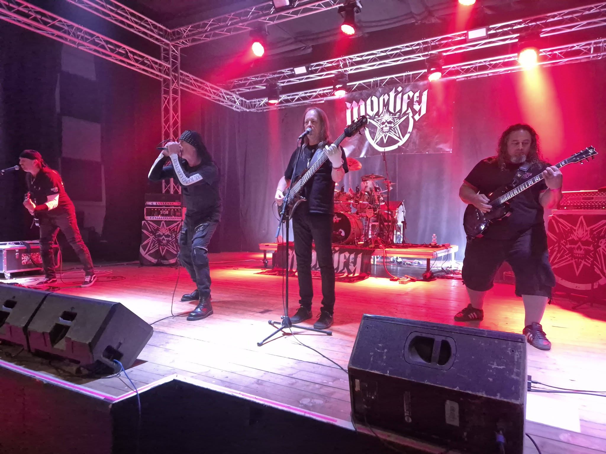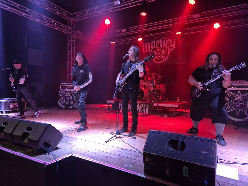 Na scéně jsou MORTIFY ze Šumperku a Jeseníku. Tato kapela vznikla již v letech 1993 a 1994 a byla na scéně devět let. Poté se na dlouhých dvacet let odmlčela, ale od roku 2024 jsou zpátky a pilně koncertuje a také navazuje na debutové album Azyl z roku 2000 a na kompilaci Rokle 2 Českého rozhlasu Olomouc, která vyšla v roce 2003. V současné době pilné koncertují a připravují nové skladby a možná se časem dočkáme i nového alba. Jejich crossover v kombinaci s trash metalem je prostě děsně fajn. MORTIFY představili průřez celou tvorbou. Po orchestrálním intru zazněly tyto písně: Stupidní, Krysy, Azyl, Na dno, Volnost mi dej, Sebevražedný sroj, Zeď, Šok, Vězeň, Cesta Tmou a na závěr Temné století. Jejich koncert provázel výborný zvuk a sehranost obou kytar byla dokonalá. Hutný a energický metal s českými texty. Sledovat tyto zkušené muzikanty bylo opravdou hudební extazí. Zpěvák Olda Koubek umocňuje a doplňuje hutnost a sílu této velmi zajímavé kapely.